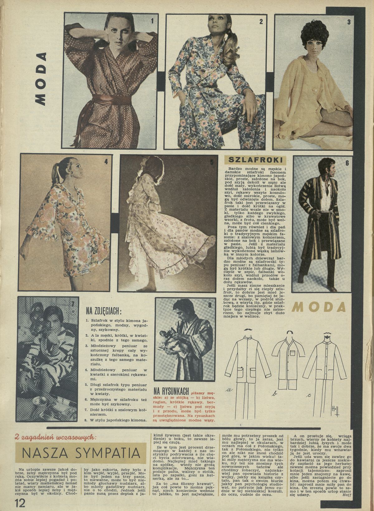 Archiwum / Moda nr 1219 (33/1968) 50585/123969 Podziel się Tytuł Moda Rubryka Moda Artykuł z numeru 1219 (33/1968) Data wydania 18 sierpnia 1968 Tagi szlafroki
