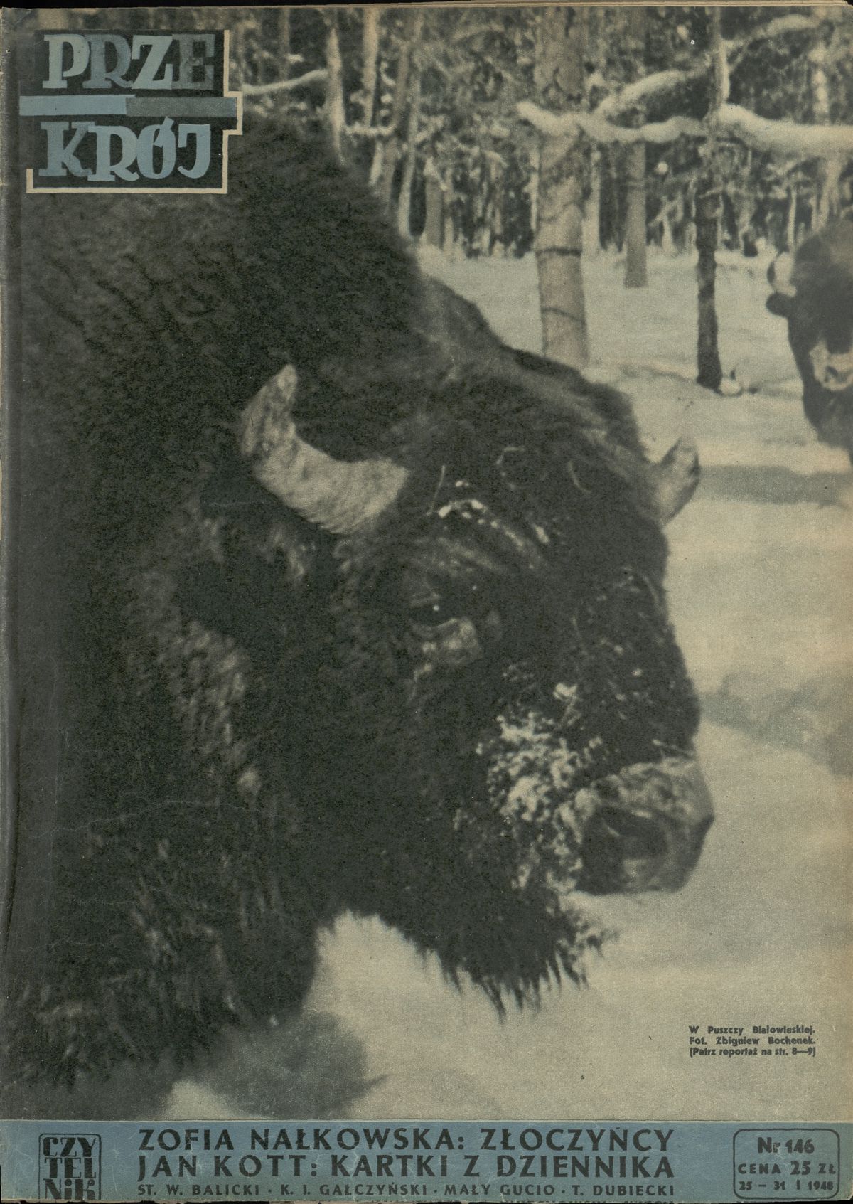 Archiwum / Okładki Przekroju nr 146 (04/1948) 1/2 Podziel się Tytuł Okładka Autor Zbigniew Bochenek Rubryka Okładki Przekroju Artykuł z numeru 146 (4/1948) Data wydania 25 stycznia 1948 Tagi Puszcza Białowieska żubry Białowieża