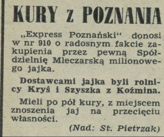 Archiwum / Rozmaitości [old] nr 226 (32/1949) 6938/123969 Podziel się Tytuł Kury z Poznania Rubryka Rozmaitości [old] Artykuł z numeru 226 (32/1949) Data wydania 7 sierpnia 1949