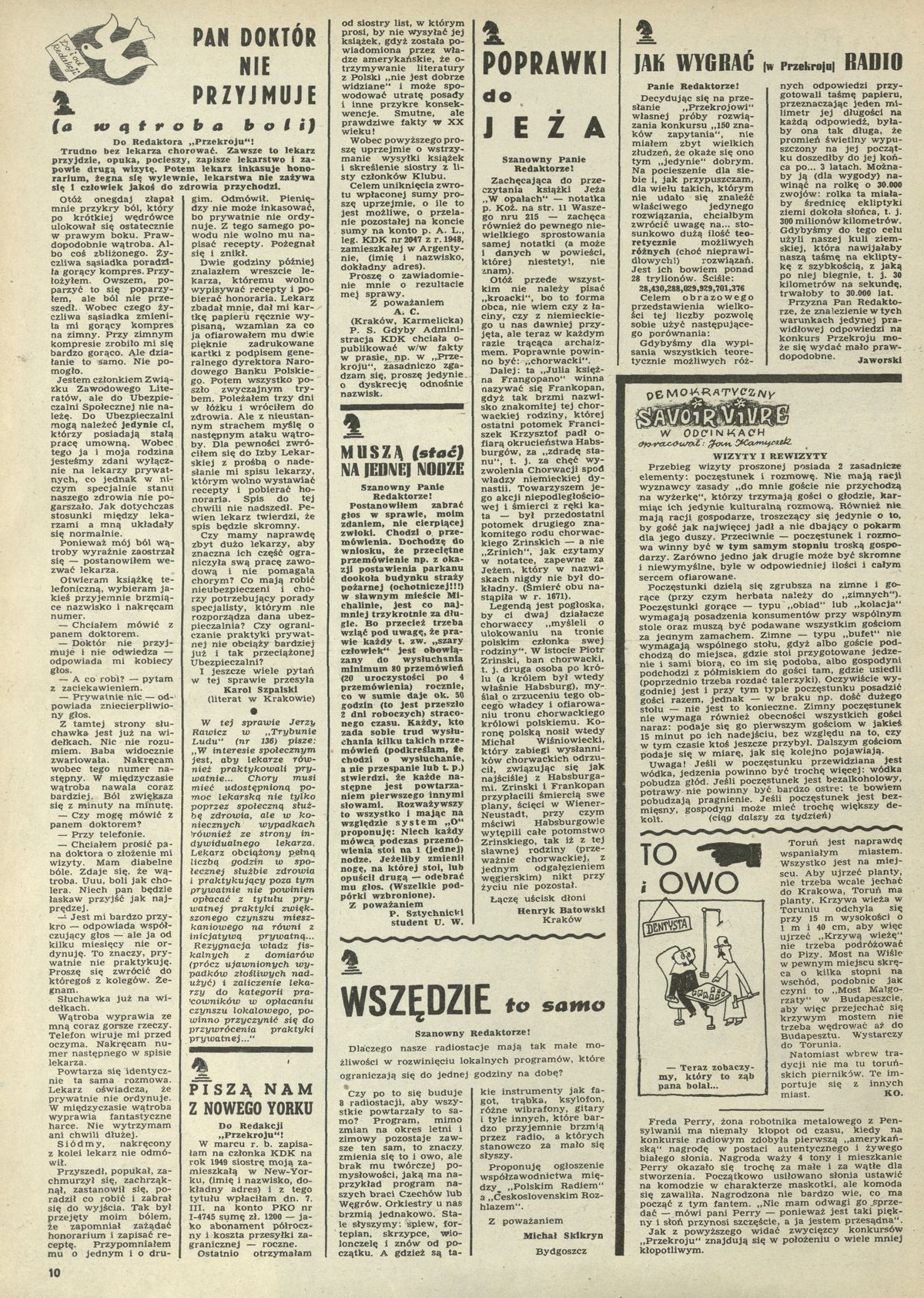 Archiwum / Listy do i od redakcji nr 217 (23/1949) 6656/123969 Podziel się Tytuł Pan doktór nie przyjmuje (a wątroba boli) Rubryka Listy do i od redakcji Artykuł z numeru 217 (23/1949) Data wydania 5 czerwca 1949