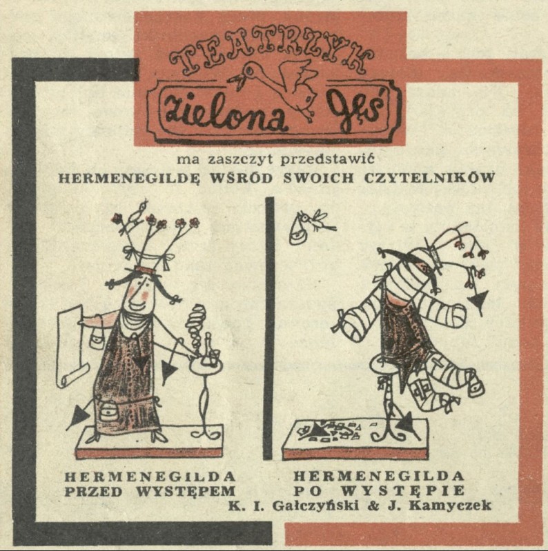 Archiwum / Teatrzyk Zielona Gęś nr 217 (23/1949) 6673/123969 Podziel się Tytuł Hermenegilda wśród swoich czytelników Rubryka Teatrzyk Zielona Gęś Artykuł z numeru 217 (23/1949) Data wydania 5 czerwca 1949 Tagi groteska humor scenka rodzajowa gag