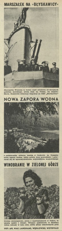 Archiwum / Przekrój tygodnia nr 236 (42/1949) 7300/123969 Podziel się Tytuł Przekrój tygodnia Rubryka Przekrój tygodnia Artykuł z numeru 236 (42/1949) Data wydania 16 października 1949 Tagi marynarka wojenna Błyskawica Czchów Zielona Góra winnice