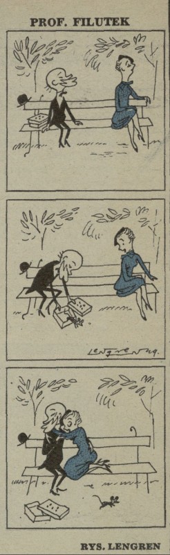 Archiwum / Profesor Filutek nr 235 (41/1949) 7286/123969 Podziel się Tytuł Prof. Filutek Autor Zbigniew Lengren Rubryka Profesor Filutek Artykuł z numeru 235 (41/1949) Data wydania 9 października 1949 Tagi żart rysunkowy mysz