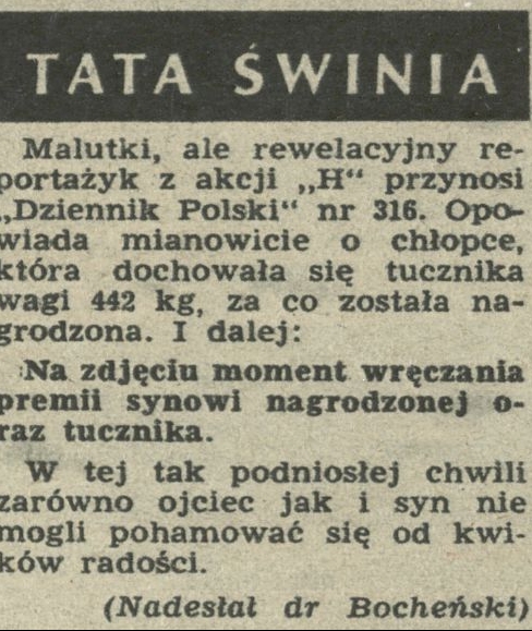Archiwum / Rozmaitości [old] nr 243 (49/1949) 2015/2062 Podziel się Tytuł Tata świnia Rubryka Rozmaitości [old] Artykuł z numeru 243 (49/1949) Data wydania 4 grudnia 1949