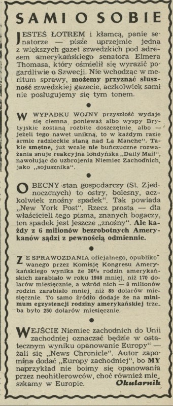 Archiwum / Felieton nr 242 (48/1949) 12/18 Podziel się Tytuł Sami o sobie Autor Okularnik Kategoria Felieton Artykuł z numeru 242 (48/1949) Data wydania 27 listopada 1949