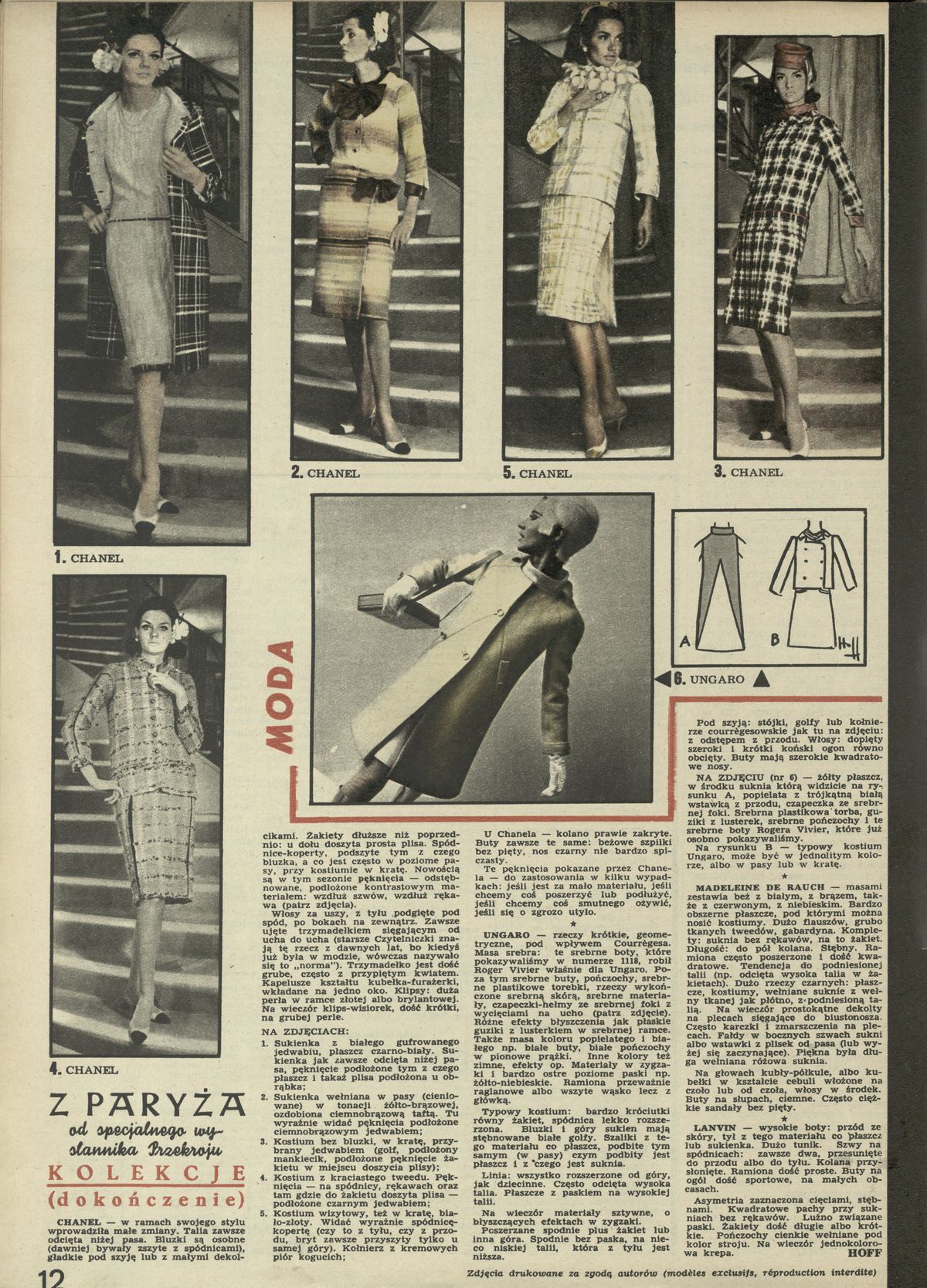 Archiwum / Moda nr 1125 (44/1966) 38/50 Podziel się Tytuł Z Paryża: kolekcje Autor Barbara Hoff Rubryka Moda Artykuł z numeru 1125 (44/1966) Data wydania 30 października 1966 Tagi chanel ungaro