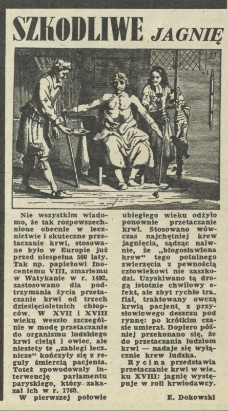 Archiwum / Społeczeństwo nr 236 (42/1949) 7311/123969 Podziel się Tytuł Szkodliwe jagnię Autor E. Dokowski Kategoria Społeczeństwo Artykuł z numeru 236 (42/1949) Data wydania 16 października 1949 Tagi medycyna przetaczanie krwi