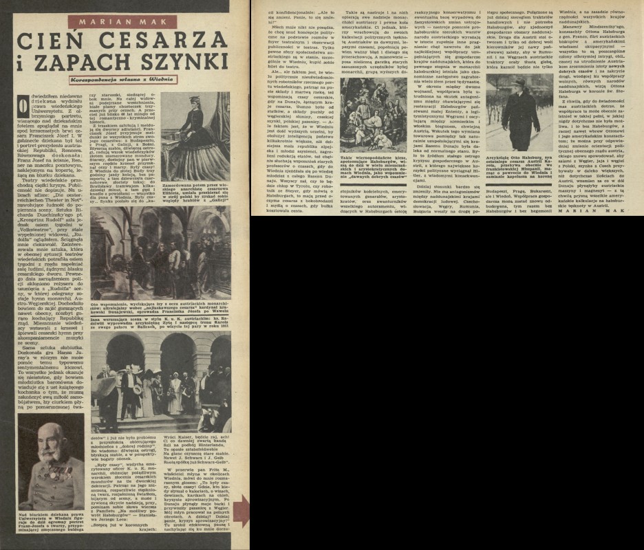 Archiwum / korespondencja własna "Przekroju" nr 236 (42/1949) 1/2 Podziel się Tytuł Cień cesarza i zapach szynki Autor Marian Mak Rubryka korespondencja własna "Przekroju" Artykuł z numeru 236 (42/1949) Data wydania 16 października 1949 Tagi Wiedeń cesarzowa Elżbieta Galicja Radziwiłł Franz-Josef