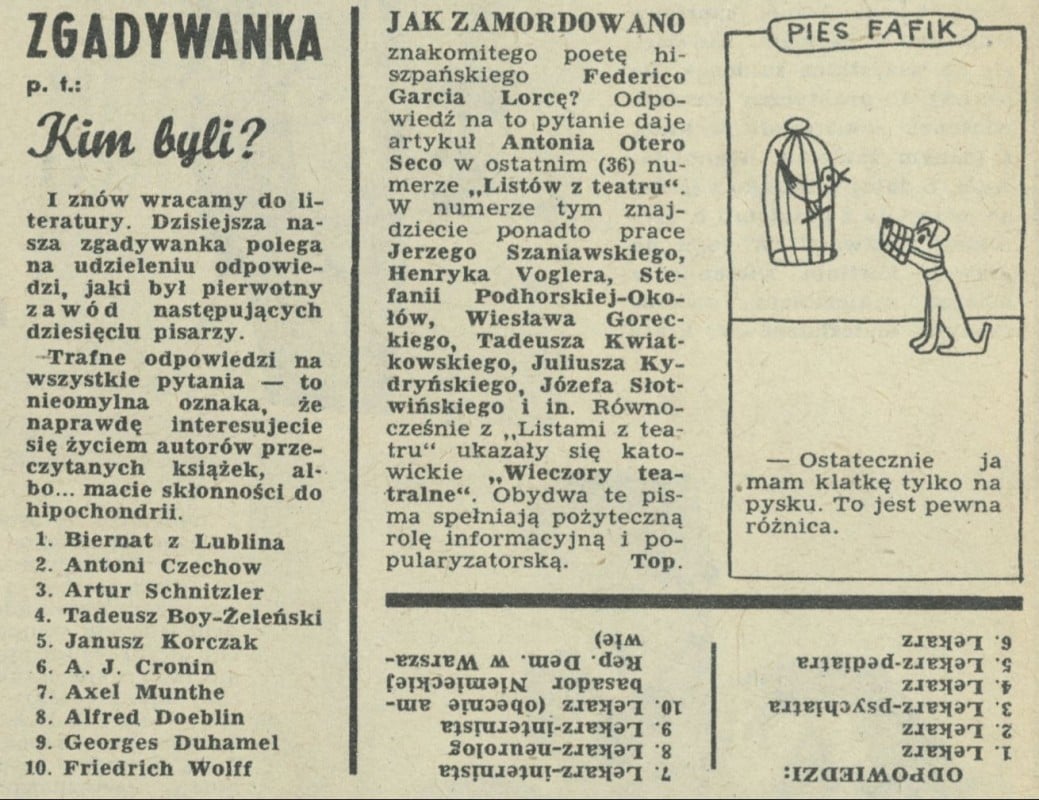 Archiwum / Zgadywanki Przekroju nr 257 (11/1950) 17/646 Podziel się Tytuł Kim byli? Rubryka Zgadywanki Przekroju Artykuł z numeru 257 (11/1950) Data wydania 12 marca 1950 Tagi zagadka zgadywanka łamigłówka