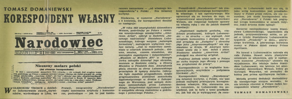Archiwum / korespondencja własna "Przekroju" nr 578 (19/1956) 22355/123969 Podziel się Tytuł Korespondent własny Autor Tomasz Domaniewski Rubryka korespondencja własna "Przekroju" Artykuł z numeru 578 (19/1956) Data wydania 6 maja 1956 Tagi "Narodowiec" prasa Lubanowski