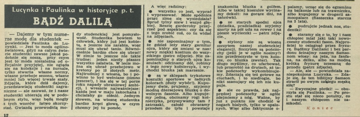 Archiwum / Dziś Lucynka i Paulinka nr 578 (19/1956) 22367/123969 Podziel się Tytuł Bądź Dalilą Autor Lucynka i Paulinka Rubryka Dziś Lucynka i Paulinka Artykuł z numeru 578 (19/1956) Data wydania 6 maja 1956 Tagi moda dla studentek