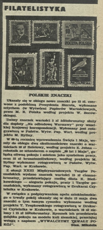 Archiwum / Filatelistyka nr 269 (23/1950) 8444/123969 Podziel się Tytuł Polskie znaczki Autor Stanisław Mikstein Rubryka Filatelistyka Artykuł z numeru 269 (23/1950) Data wydania 4 czerwca 1950 Tagi Bierut 1 Maja Targi Poznańskie Bieńkowski apel sztokholmski