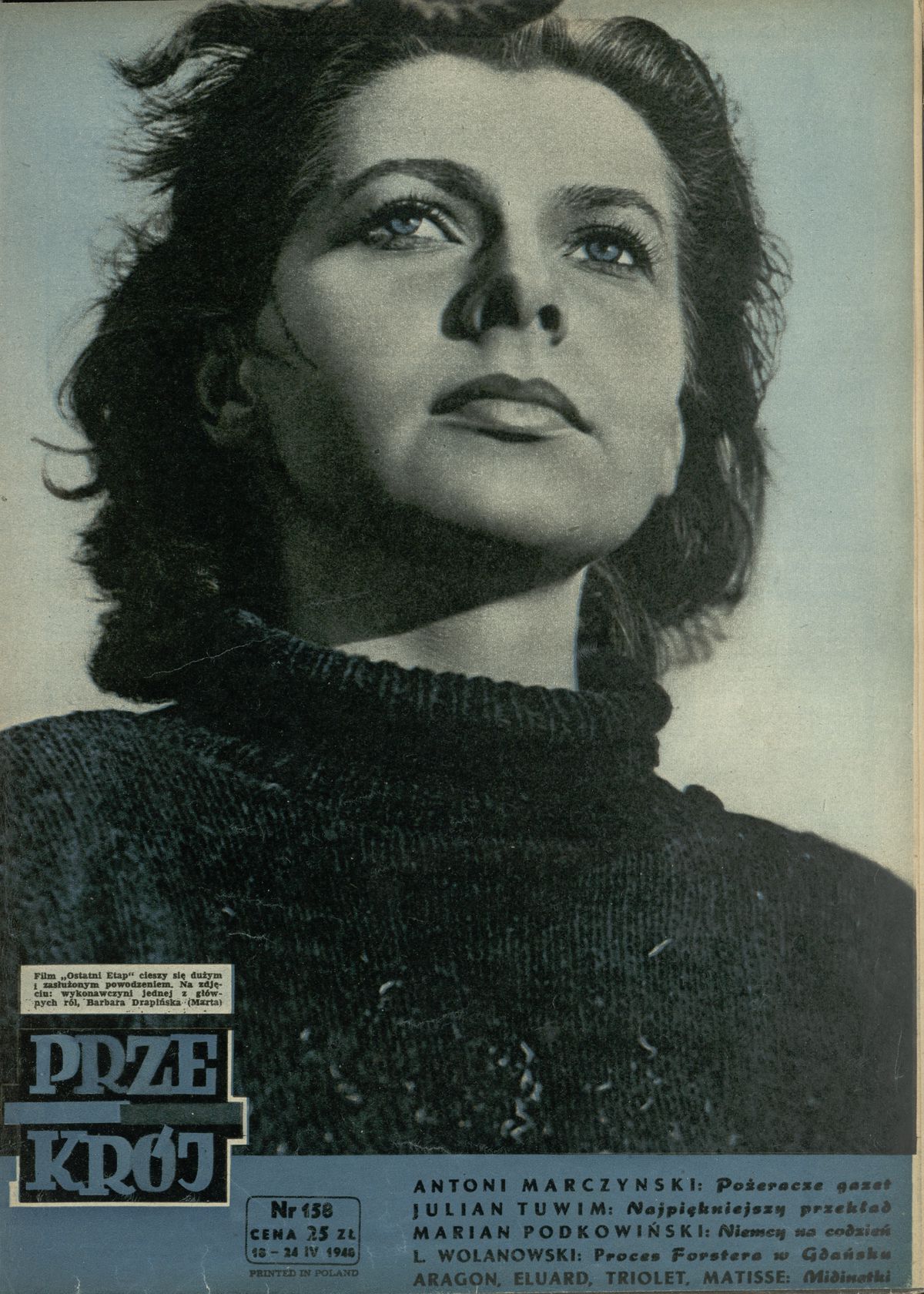 Archiwum / Okładki Przekroju nr 158 (16/1948) 4644/123969 Podziel się Tytuł Okładka Rubryka Okładki Przekroju Artykuł z numeru 158 (16/1948) Data wydania 16 kwietnia 1948 Tagi Barbara Drapińska