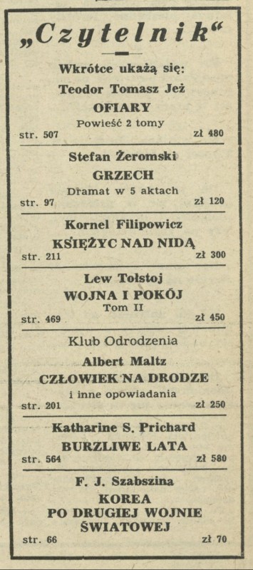 Archiwum / Reklamy nr 281 (35/1950) 8916/123969 Podziel się Tytuł „Czytelnik” Rubryka Reklamy Artykuł z numeru 281 (35/1950) Data wydania 27 sierpnia 1950