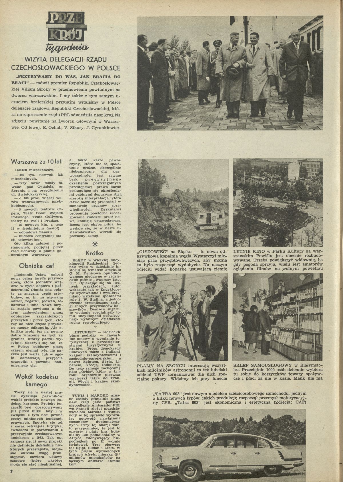 Archiwum / Przekrój tygodnia nr 588 (29/1956) 44/106 Podziel się Tytuł Przekrój tygodnia Autor CAF Rubryka Przekrój tygodnia Artykuł z numeru 588 (29/1956) Data wydania 15 lipca 1956 Tagi Czechosłowacja Warszawa "Giszowiec" Śląsk Powiśle Park Kultury letnie kino Wielka Encyklopedia Radziecka ceny kodeks karny plamy na słońcu sklep samousługowy samochód Tatra 603