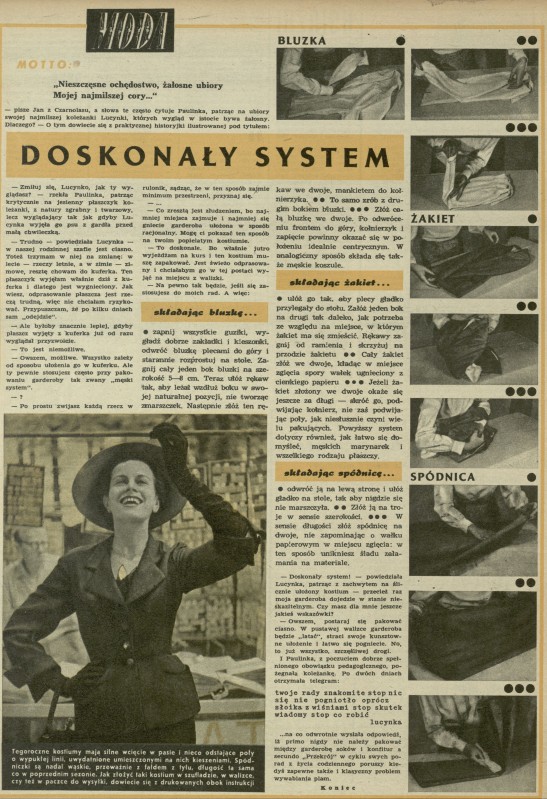 Archiwum / Moda nr 284 (38/1950) 9035/123969 Podziel się Tytuł Doskonały system Rubryka Moda Artykuł z numeru 284 (38/1950) Data wydania 17 września 1950 Tagi moda damska kostiumy porządki składanie ubrań porady domowe