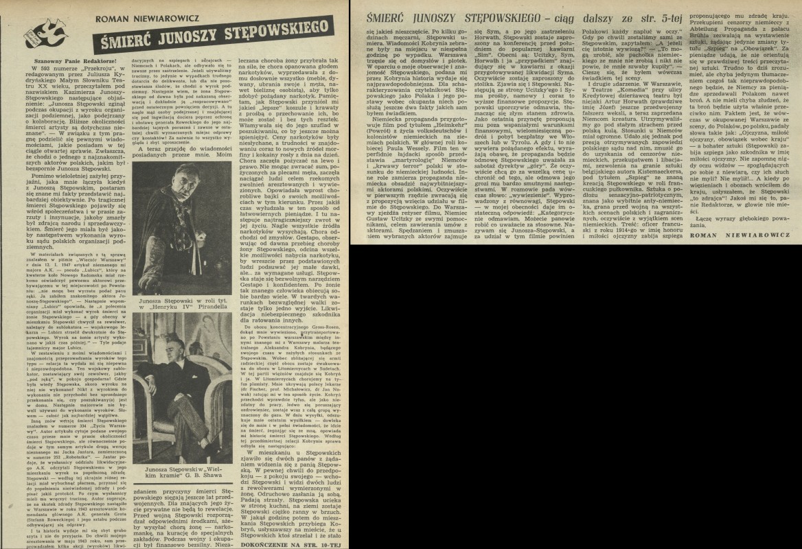 Archiwum / Listy do i od redakcji nr 595 (36/1956) 2/2 Podziel się Tytuł Śmierć Junoszy Stępowskiego Autor Roman Niewiarowicz Rubryka Listy do i od redakcji Artykuł z numeru 595 (36/1956) Data wydania 2 września 1956 Tagi narkotyki teatr aktor Kazimierz Junosza-Stępowski