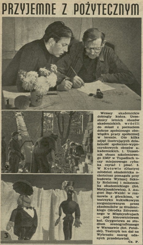 Archiwum / Fotografia nr 287 (41/1950) 1/1 Podziel się Tytuł Przyjemne z pożytecznym Autor Cz. P. Kategoria Fotografia Artykuł z numeru 287 (41/1950) Data wydania 8 października 1950 Tagi obóz akademicki wakacje