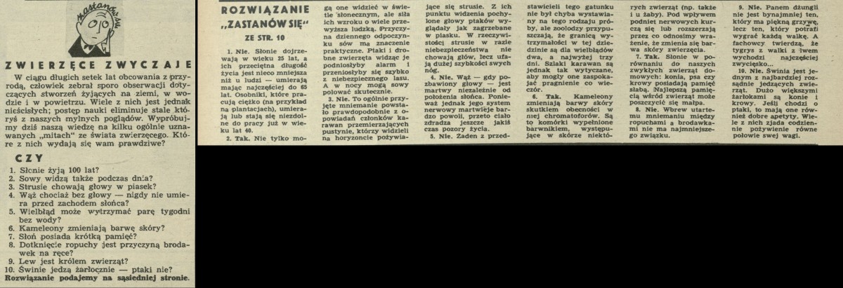 Archiwum / Zastanów się nr 336 (38/1951) 12/269 Podziel się Tytuł Zwierzęce zwyczaje Rubryka Zastanów się Artykuł z numeru 336 (38/1951) Data wydania 16 września 1951 Tagi zagadka zgadywanka łamigłówka zastanów się