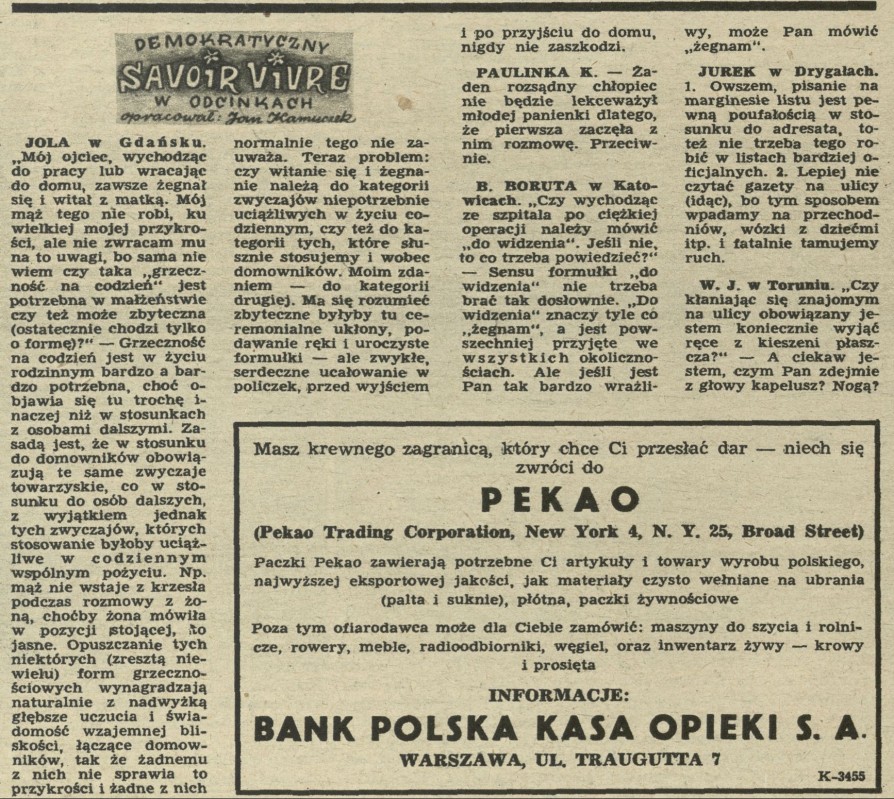 Archiwum / Demokratyczny savoir-vivre nr 290 (44/1950) 09/49 Podziel się Tytuł Demokratyczny savoir-vivre Autor Jan Kamyczek Rubryka Demokratyczny savoir-vivre Artykuł z numeru 290 (44/1950) Data wydania 29 października 1950