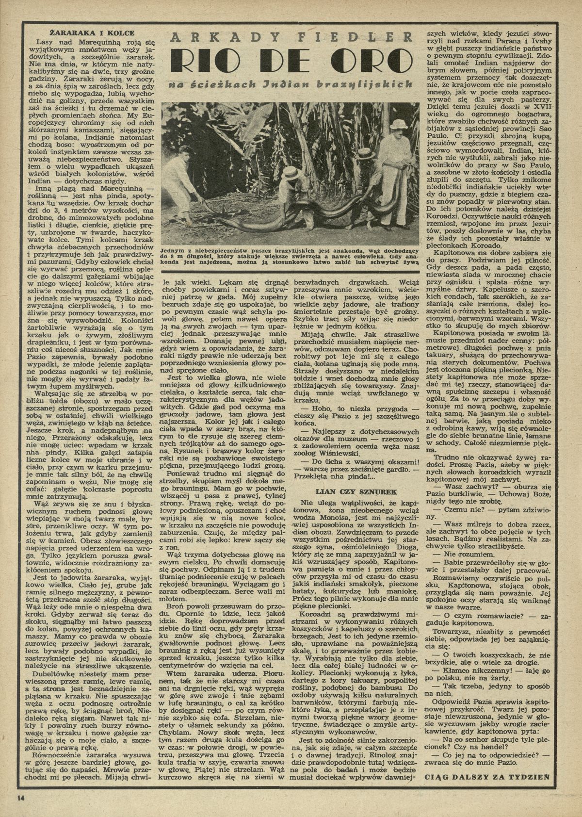 Archiwum / Reportaż nr 291 (45/1950) 170/198 Podziel się Tytuł Rio de Oro. Na ścieżkach Indian brazylijskich. Autor Arkady Fiedler Kategoria Reportaż Artykuł z numeru 291 (45/1950) Data wydania 5 listopada 1950 Tagi Brazylia fragmenty książki antropologia podróż