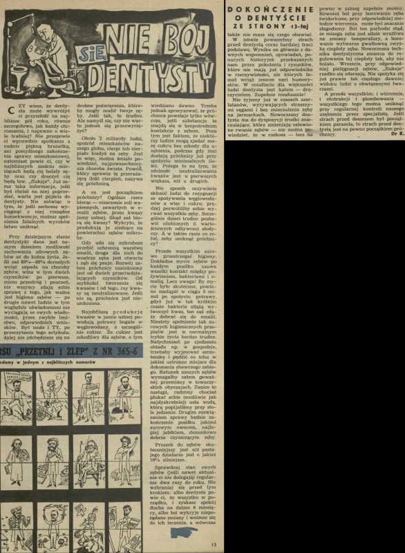 Archiwum / Artykuł nr 369 (18/1952) 489/1928 Podziel się Tytuł Nie bój się dentysty Autor dr. K. Kategoria Artykuł Artykuł z numeru 369 (18/1952) Data wydania 4 maja 1952 Tagi zdrowie porady stomatolog zęby higiena jamy ustnej