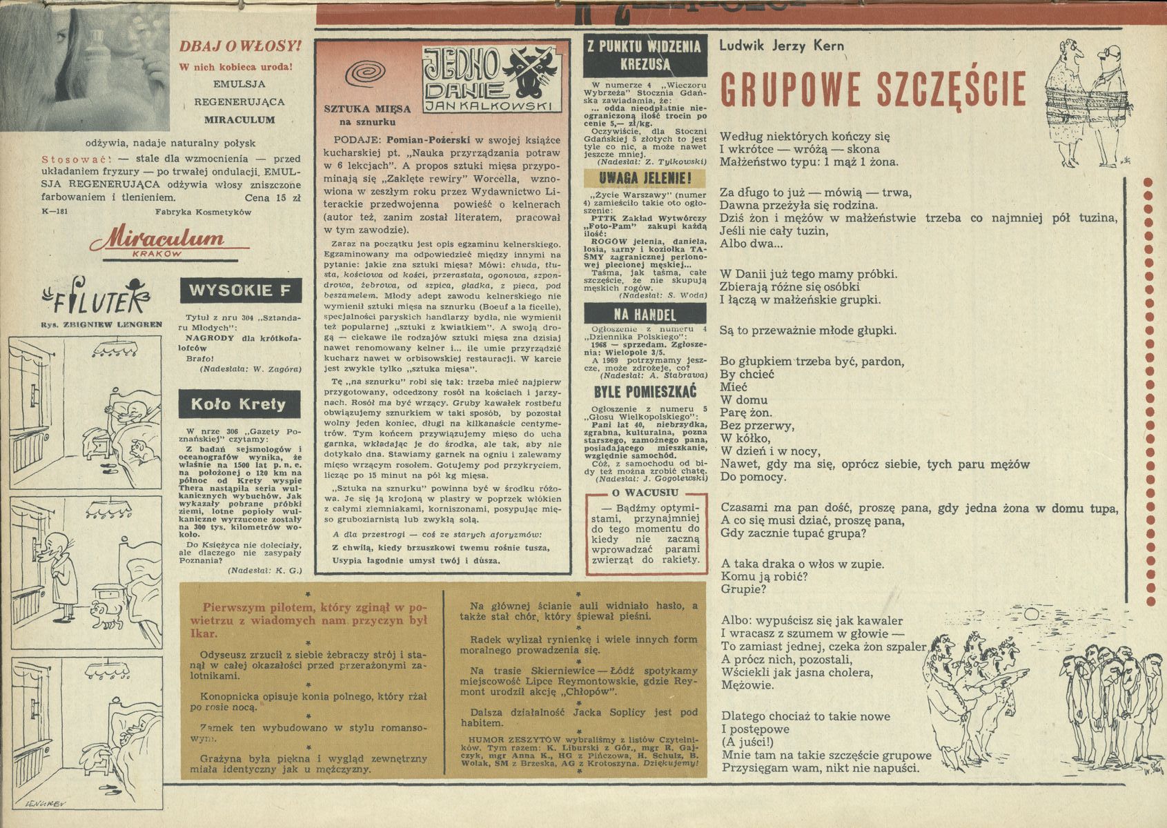 Archiwum / Rozmaitości [old] nr 1294 (04/1970) 08/865 Podziel się Tytuł Grupowe szczęście Autor Ludwik Jerzy Kern Rubryka Rozmaitości [old] Artykuł z numeru 1294 (4/1970) Data wydania 25 stycznia 1970