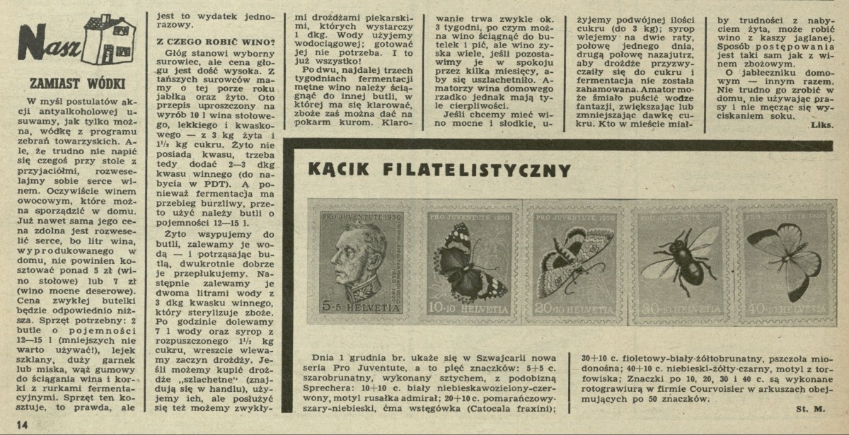Archiwum / Nasz dom nr 293 (47/1950) 72/83 Podziel się Tytuł Zamiast wódki Autor Liks Rubryka Nasz dom Artykuł z numeru 293 (47/1950) Data wydania 19 listopada 1950 Tagi wino przepis alkohol