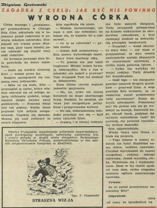 Archiwum / Łamigłówki Przekroju nr 293 (47/1950) 40/646 Podziel się Tytuł Zagadka z cyklu „Jak być nie powinno” – Wyrodna córka Autor Zbigniew Grotowski Rubryka Łamigłówki Przekroju Artykuł z numeru 293 (47/1950) Data wydania 19 listopada 1950 Tagi zagadka zgadywanka łamigłówka jak być nie powinno?