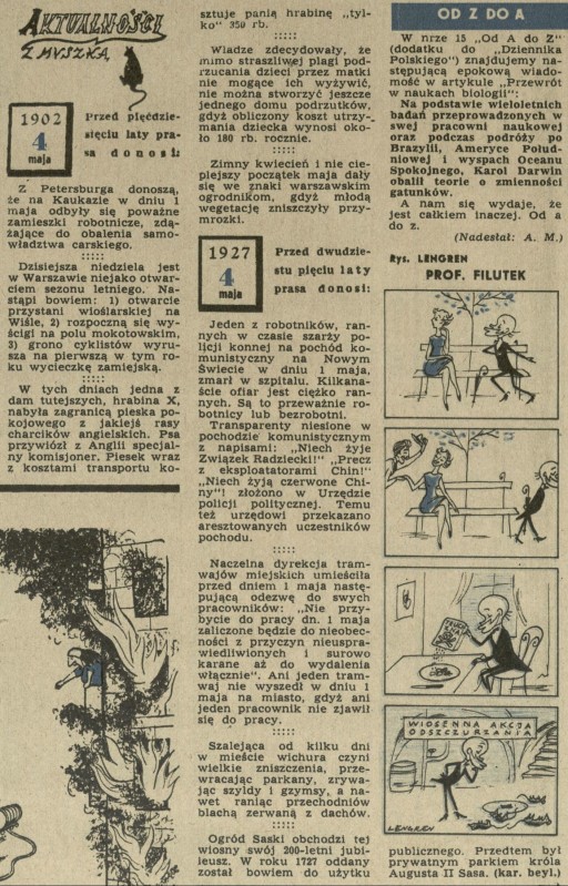 Archiwum / Aktualności z myszką nr 369 (18/1952) 142/603 Podziel się Tytuł Aktualności z myszką Rubryka Aktualności z myszką Artykuł z numeru 369 (18/1952) Data wydania 4 maja 1952