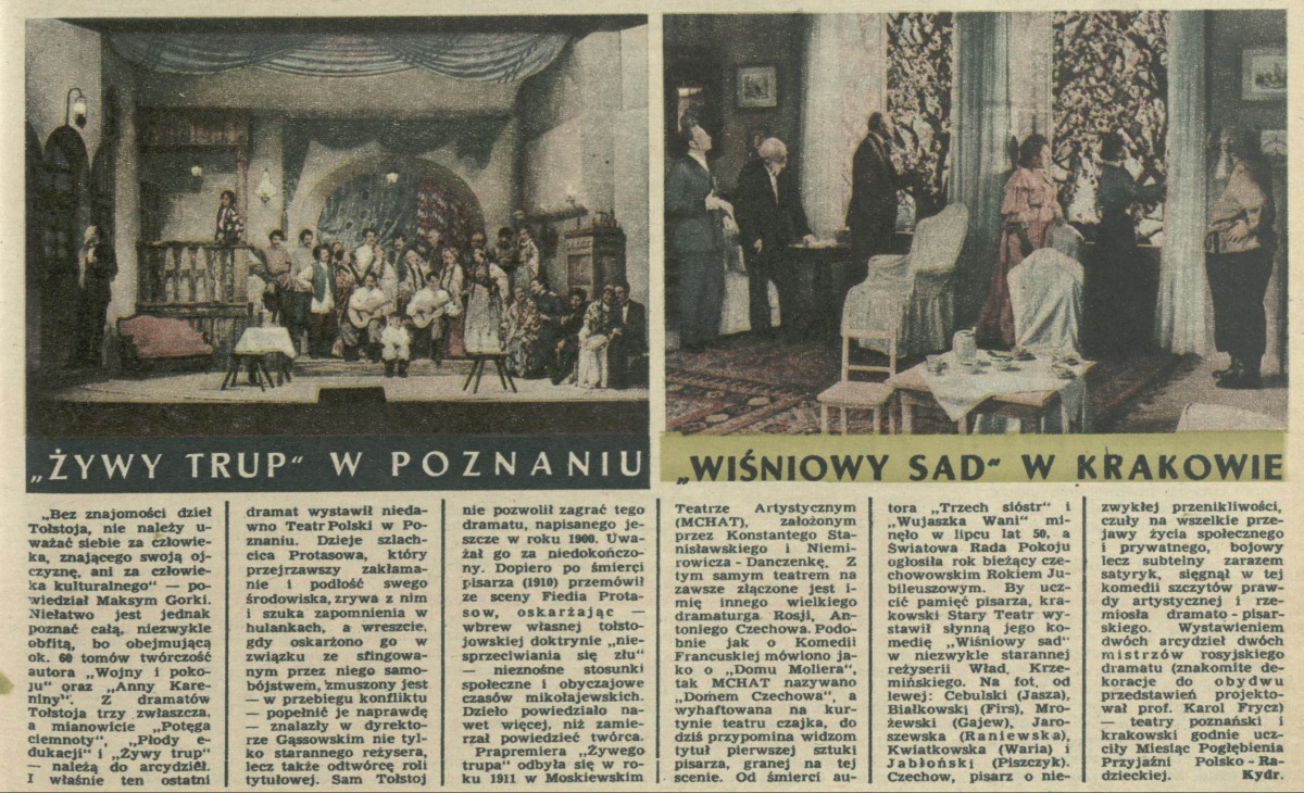 Archiwum / Teatr nr 497 (42/1954) 2/6 Podziel się Tytuł „Żywy trup” w Poznaniu. „Wiśniowy Sad” w Krakowie Autor Kydr. Rubryka Teatr Artykuł z numeru 497 (42/1954) Data wydania 17 października 1954 Tagi Teatr Polski Tołstoj Teatr Artystyczny MCHAT Stary Teatr Miesiąc Pogłębienia Przyjaźni Polsko-Radzieckiej