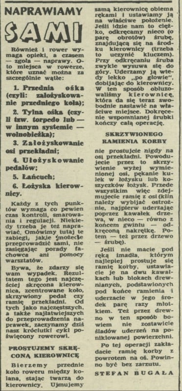 Archiwum / Różności nr 497 (42/1954) 7/9 Podziel się Tytuł Naprawiamy sami Autor Stefan Bugała Kategoria Różności Artykuł z numeru 497 (42/1954) Data wydania 17 października 1954 Tagi łańcuch ośka rower korba