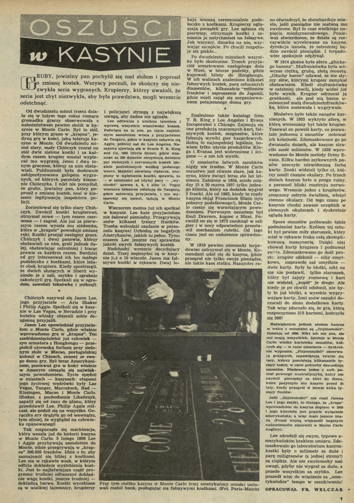 Archiwum / Artykuł nr 576 (17/1956) 41/127 Podziel się Tytuł Oszuści w kasynie Autor Franciszek Welczar Kategoria Artykuł Artykuł z numeru 576 (17/1956) Data wydania 22 kwietnia 1956 Tagi Monte Carlo Jason Lee Aris Shaker Philip Aggie