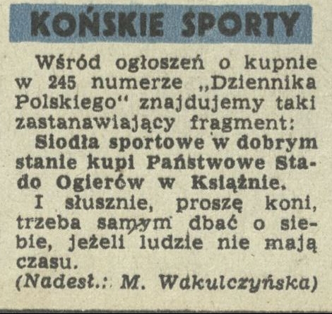 Archiwum / Rozmaitości [old] nr 339 (41/1951) 11269/123969 Podziel się Tytuł Końskie sporty Rubryka Rozmaitości [old] Artykuł z numeru 339 (41/1951) Data wydania 7 października 1951