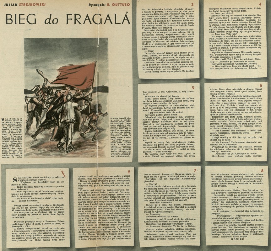 Archiwum / Proza nr 354 (03/1952) 83/2505 Podziel się Tytuł Bieg do Fragala Autor Julian Stryjkowski Renato Guttuso Kategoria Proza Artykuł z numeru 354 (3/1952) Data wydania 20 stycznia 1952 Tagi Włochy chłopi rolnictwo ziemiaństwo literatura