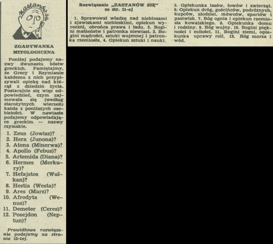 Archiwum / Zastanów się nr 347 (49/1951) 24/269 Podziel się Tytuł Zgadywanka mitologiczna Rubryka Zastanów się Artykuł z numeru 347 (49/1951) Data wydania 2 grudnia 1951 Tagi zagadka