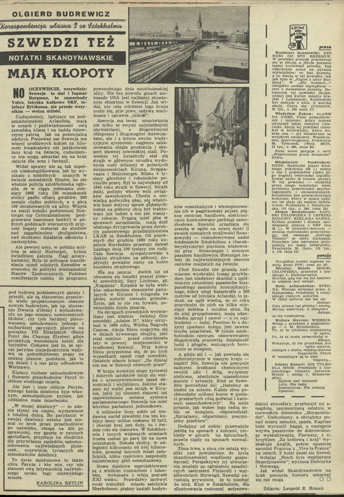 Archiwum / korespondencja własna "Przekroju" nr 1298 (08/1970) 47/1979 Podziel się Tytuł Szwedzi też mają kłopoty Autor Olgierd Budrewicz Rubryka korespondencja własna "Przekroju" Artykuł z numeru 1298 (8/1970) Data wydania 22 lutego 1970