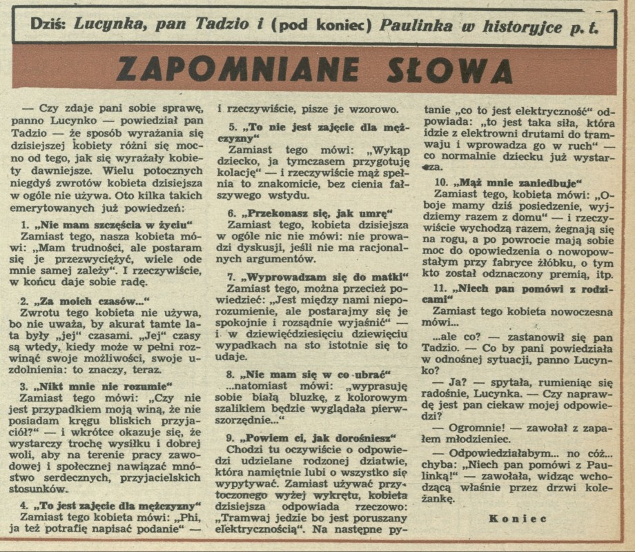 Archiwum / Dziś Lucynka i Paulinka nr 347 (49/1951) 11606/123969 Podziel się Tytuł Zapomniane słowa Rubryka Dziś Lucynka i Paulinka Artykuł z numeru 347 (49/1951) Data wydania 2 grudnia 1951