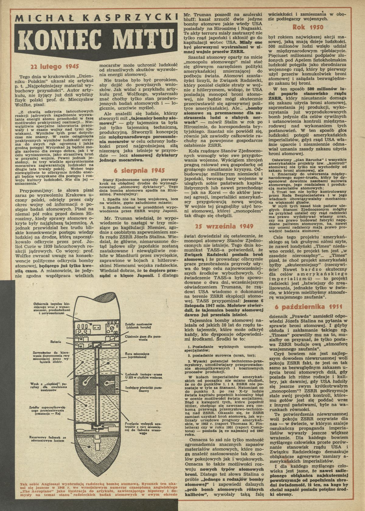 Archiwum / Artykuł nr 344 (46/1951) 11455/123969 Podziel się Tytuł Koniec mitu Autor Michał Kasprzycki Kategoria Artykuł Artykuł z numeru 344 (46/1951) Data wydania 11 listopada 1951 Tagi bomba broń atomowa