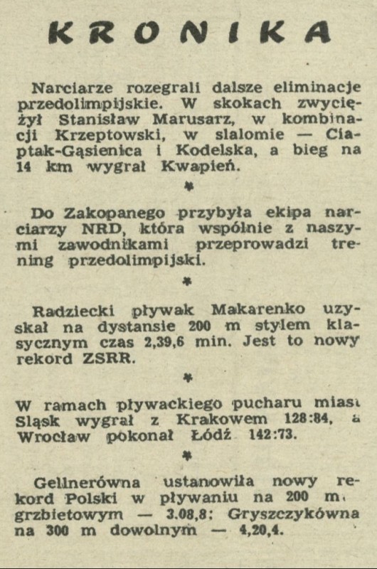 Archiwum / Kronika (sportowa) nr 354 (03/1952) 106/2505 Podziel się Tytuł Kronika (sportowa) Autor Karol "Charlie" Ferster Rubryka Kronika (sportowa) Artykuł z numeru 354 (3/1952) Data wydania 20 stycznia 1952