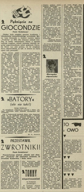 Archiwum / Listy do i od redakcji nr 361 (10/1952) 12184/123969 Podziel się Tytuł Listy do i od redakcji Rubryka Listy do i od redakcji Artykuł z numeru 361 (10/1952) Data wydania 9 marca 1952 Tagi dzieła sztuki zabytki Mona Lisa flota Batory"