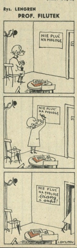 Archiwum / Profesor Filutek nr 355 (04/1952) 11880/123969 Podziel się Tytuł Prof. Filutek Autor Zbigniew Lengren Rubryka Profesor Filutek Artykuł z numeru 355 (4/1952) Data wydania 27 stycznia 1952 Tagi żart rysunkowy plucie