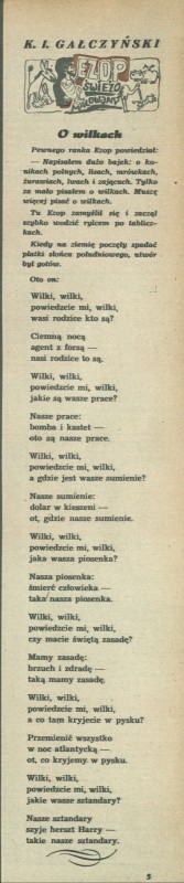 Archiwum / Proza nr 348 (50/1951) 08/108 Podziel się Tytuł O wilkach Autor Konstanty Ildefons Gałczyński Kategoria Proza Artykuł z numeru 348 (50/1951) Data wydania 9 grudnia 1951 Tagi Bajka Ezopa groteska humor scenka rodzajowa gag