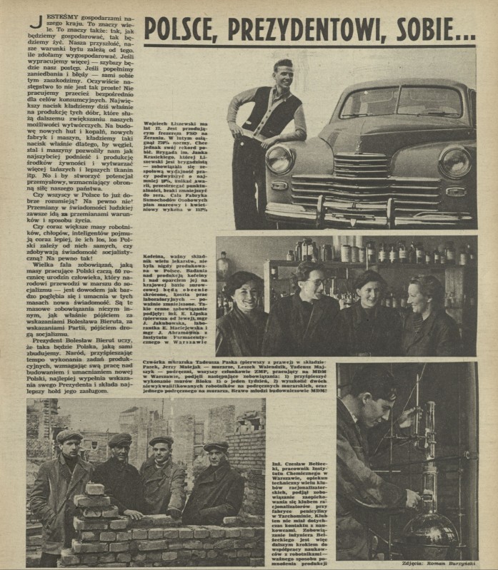 Archiwum / Artykuł nr 363 (12/1952) 496/2505 Podziel się Tytuł Polsce, prezydentowi, sobie... Autor Roman Burzyński Kategoria Artykuł Artykuł z numeru 363 (12/1952) Data wydania 23 marca 1952 Tagi socjalizm Bierut