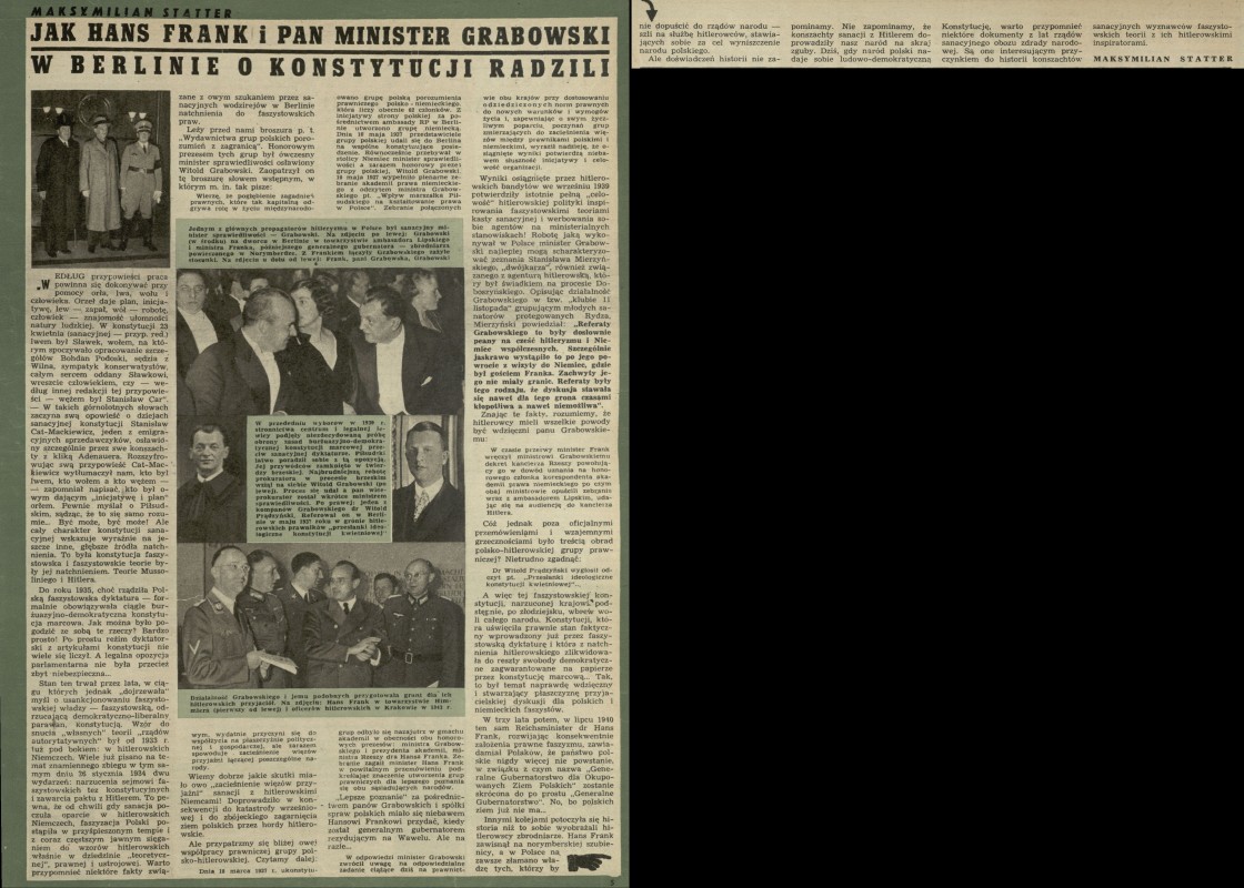 Archiwum / Artykuł nr 362 (11/1952) 454/2505 Podziel się Tytuł Jak Hans Frank i pan minister Grabowski w Berlinie o Konstytucji radzili Autor Maksymilian Statter Kategoria Artykuł Artykuł z numeru 362 (11/1952) Data wydania 16 marca 1952 Tagi Grabowski hitleryzm