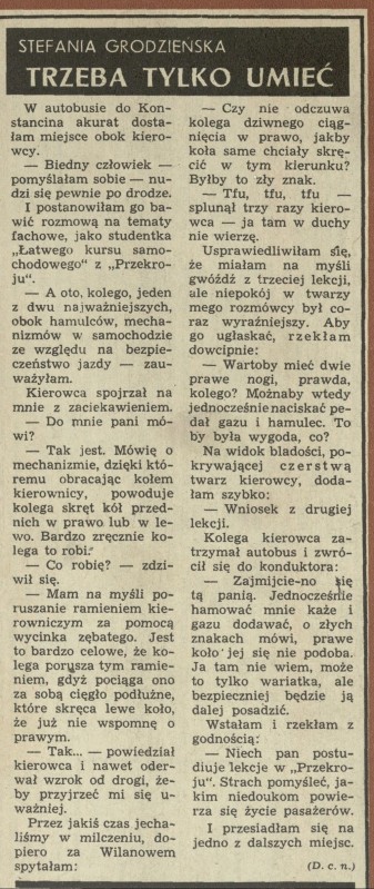 Archiwum / Rozmaitości [old] nr 376 (25/1952) 1/8 Podziel się Tytuł Trzeba tylko umieć Autor Stefania Grodzieńska Rubryka Rozmaitości [old] Artykuł z numeru 376 (25/1952) Data wydania 22 czerwca 1952 Tagi autobus hamulce Wilanów