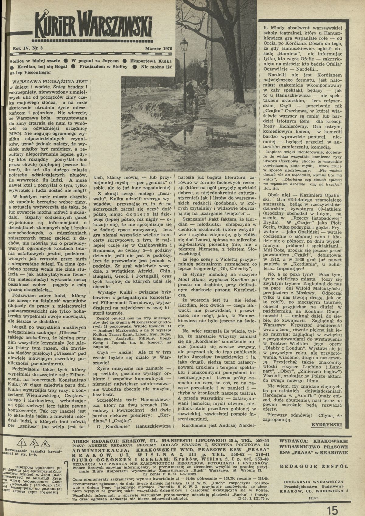 Archiwum / Kurier Warszawski nr 1300 (10/1970) 03/100 Podziel się Tytuł Kurier warszawski Autor Kydryński Rubryka Kurier Warszawski Artykuł z numeru 1300 (10/1970) Data wydania 8 marca 1970