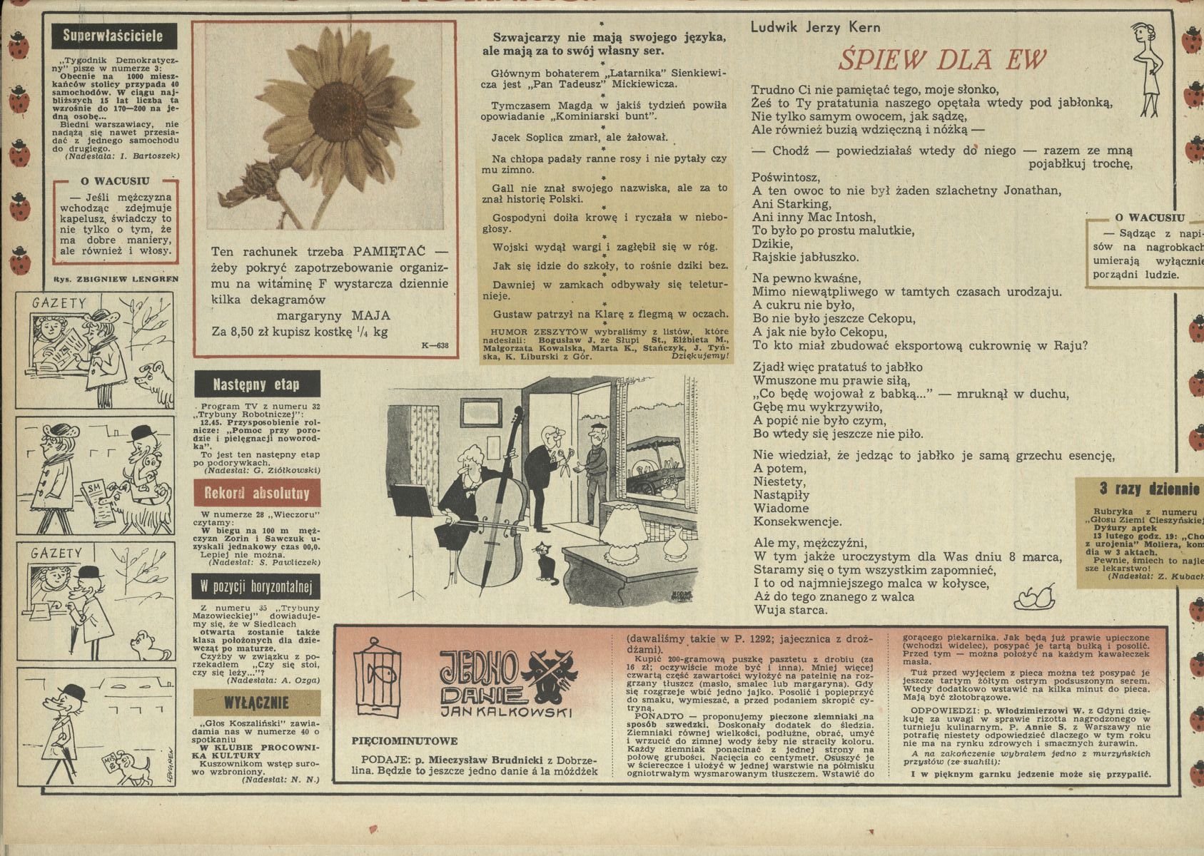 Archiwum / Rozmaitości [old] nr 1300 (10/1970) 53250/123969 Podziel się Tytuł Śpiew dla Ew Autor Ludwik Jerzy Kern Rubryka Rozmaitości [old] Artykuł z numeru 1300 (10/1970) Data wydania 8 marca 1970
