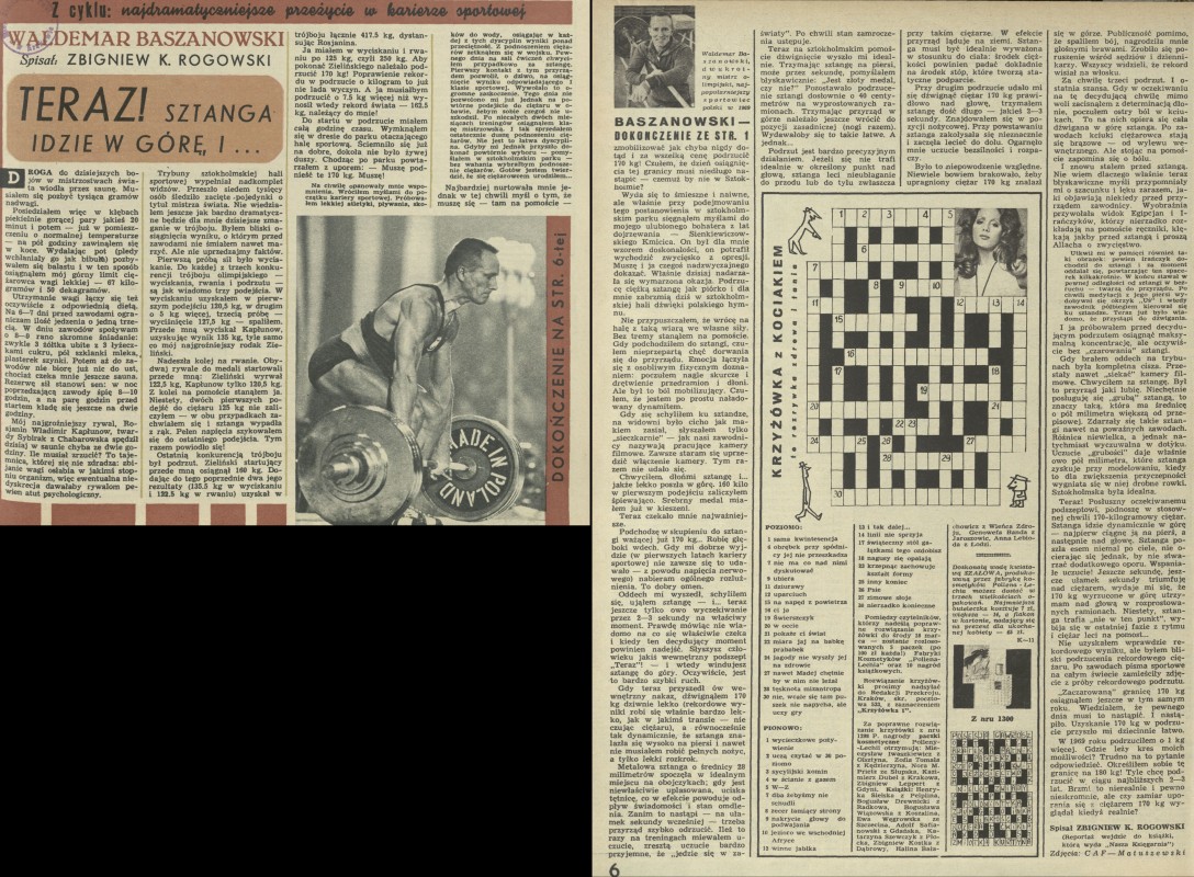 - Najdramatyczniejsze przeżycie w karierze sportowej: Waldemar Baszanowski. Teraz! Sztanga idzie w górę, i..