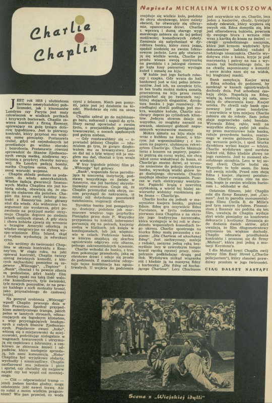 Archiwum / Film nr 488 (33/1954) 17/58 Podziel się Tytuł Charlie Chaplin Autor Michalina Wilkoszowa Rubryka Film Artykuł z numeru 488 (33/1954) Data wydania 15 sierpnia 1954 Tagi komedia komik aktor